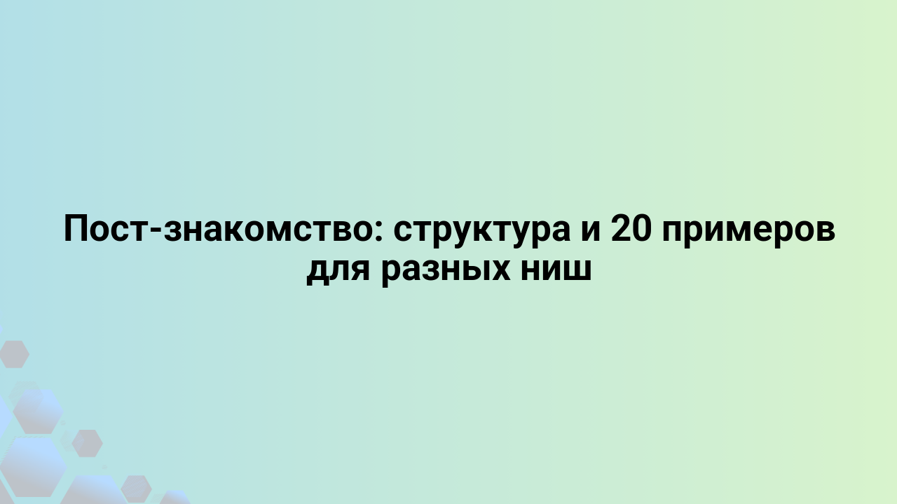 Tags знакомство с аудиторией Пост-знакомство: структура и 20 примеров для разных ниш AIArticle 15.01.2026 Представьте, вы вошли в комнату, полную потенциальных клиентов. У вас есть одна минута, чтобы представиться так, чтобы вас запомнили, захотели