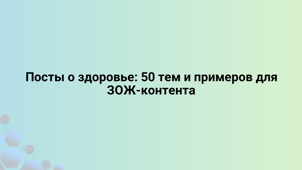 Tags wellness-темы Посты о здоровье: 50 тем и примеров для ЗОЖ-контента AIArticle 15.01.2026 Выгорание при создании контента о здоровье — знакомая история. Кажется, что все уже сказано про калории, планку и пользу воды.